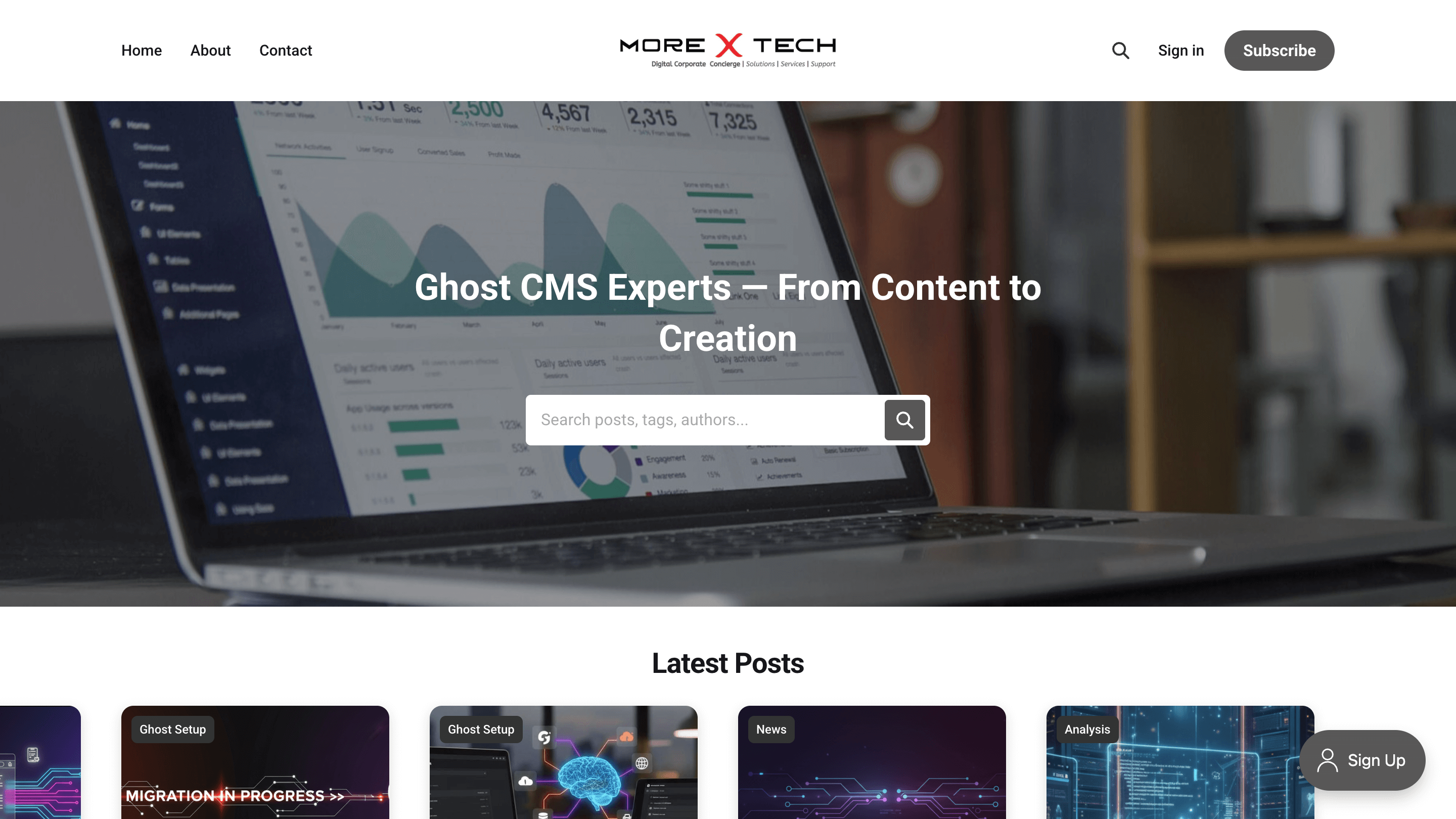 We’re a team of passionate Ghost CMS developers dedicated to helping creators, businesses, and publishers make the most of this powerful platform. At More X Tech, we believe in the elegance and performance of Ghost CMS — a platform designed for clarity, speed, and creative freedom.