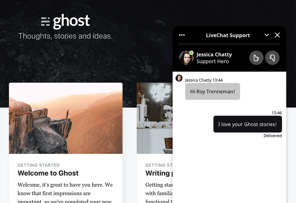 Integrate your LiveChat account with Ghost and install a chat widget on your site to connect with readers