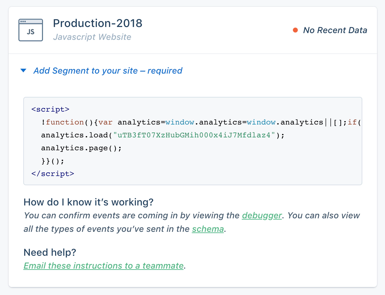 Your site is now fully integrated with Segment and you can connect to as many third party data services as you like and enjoy the event pipeline which Segment provides.