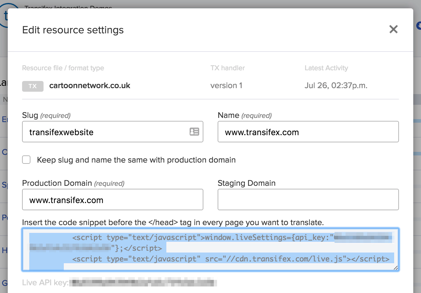 Then, in your Ghost Admin area, head over to the Code Injection settings page and paste the Transifex snippet into the Header section. Hit the save button, and you’re all done.